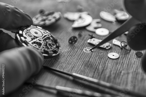 Watchmaker is repairing the mechanical watches in his workshop