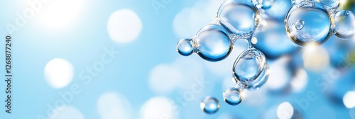 Water Bubbles Abstract Background - Close-up of transparent water bubbles against a soft blue bokeh background. Perfect for clean, fresh, and healthy themes