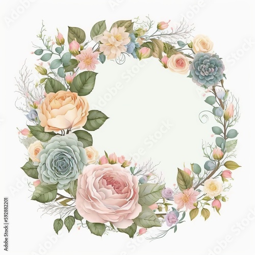 Water Color Pastel Flower and bloom, Wedding decorative perfect circle frame border, AI Genrative