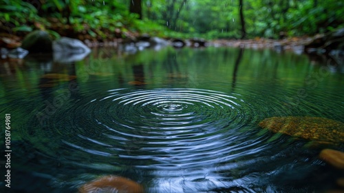 Water Droplet Ripples in a Tranquil Forest Stream