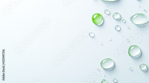 Water droplets background: Delicate water droplets, each a miniature lens, adorn the surface, reflecting the subtle interplay of light and shadow, evoke a sense of freshness.