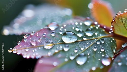 Water droplets on vibrant colored autumn leaves, AI generated