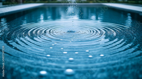Water Drops Creating Concentric Ripples in a Blue Pool