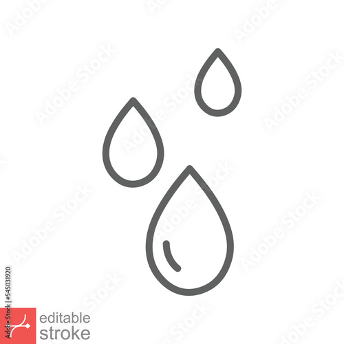 Water drops icon. Simple outline style. Drop water, droplet, liquid, rain, aqua, farming, environment concept. Thin line vector illustration isolated on white background. Editable stroke EPS 10.
