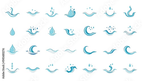 Water Drops Icons Set Or Water Wave Icons Set Or Logo Water.