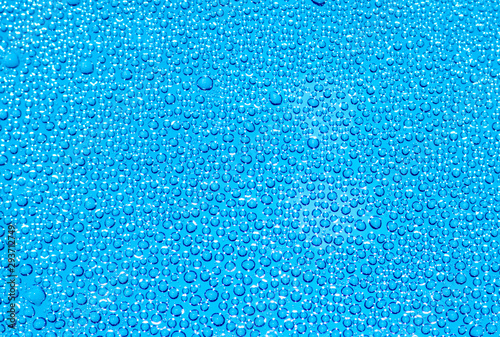 water drops on blue glass