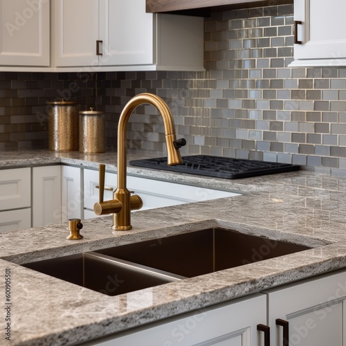 Water faucet with sink in the kitchen marble finish, modern kitchen interior design Generative AI
