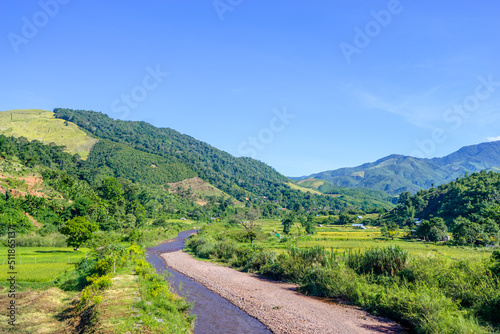 Water flow from the river in the countryside hometown in Sapun, Nan, Thailand.