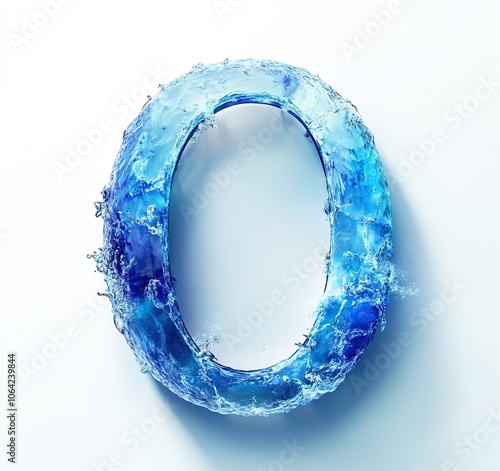 Water font letter O made of water on white background. blue liquid ocean. 3d