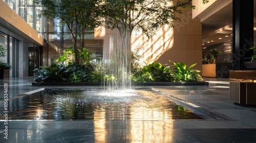 Water Fountain in a Modern Building Lobby