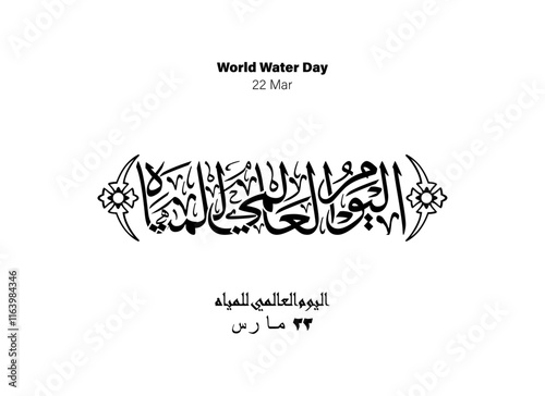 Water Holiday Arabic Calligraphy, Translated World Water Day, 22 Mar