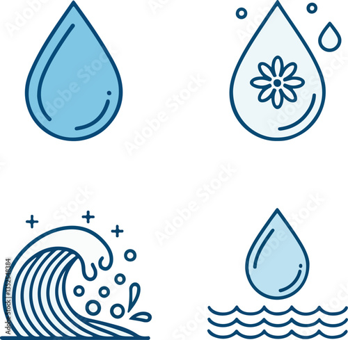 Water Icons Set Editable Stroke Vector Aqua Nature Drop Clean Environment