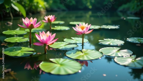Water lilies forming a natural floral pattern across a lake, leaves, landscape, image