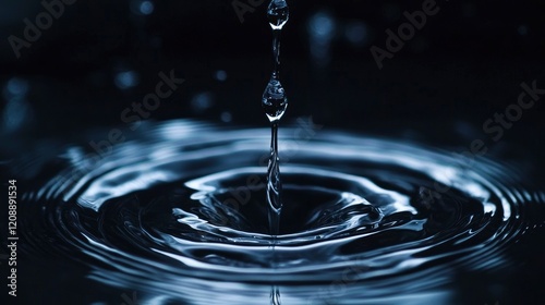 Water ripples from a drop of water in the dark. water drop dark tone. Abstract black circle water drop ripple. Liquid texture background. Rippled liquid with mood effect in black and white.