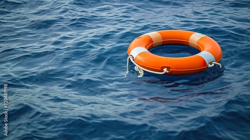Water Safety, Orange Lifebuoy Floating in the Blue Sea