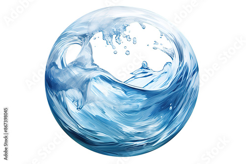 Water simulation liquid splash in sphere isolated on transparent background, 3d illustration.
