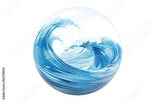 Water simulation liquid splash in sphere isolated on transparent background, 3d illustration.