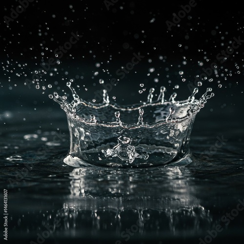 Water Splash Creating a Crown Shape on Dark Reflective Surface