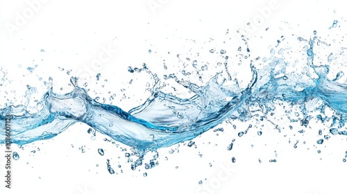 Water splash isolated on white background, emphasizing freshness and dynamic movement
