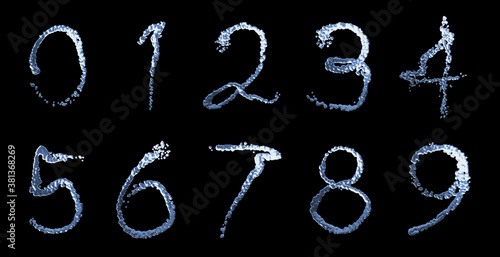 Water splash numbers isolated on black background. 3d render
