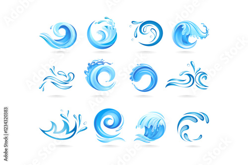 Water splashes collection blue waves wavy symbols