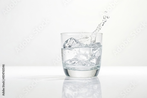 Water Splashing into Glass with Ice