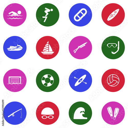 Water Sports Icons. White Flat Design In Circle. Vector Illustration.