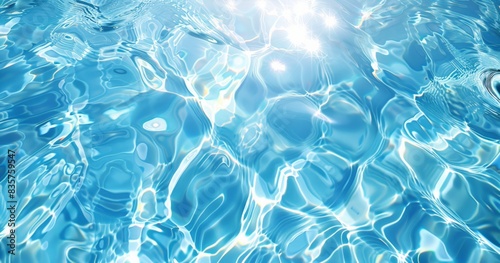 Water texture background with ripples and light reflections on turquoise blue water surface in swimming pool or ocean. Sunlight reflection on the surface of turquoise clear sea water texture.