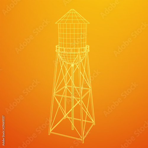 Water tower. Industrial construction with water tank. Wireframe low poly mesh vector illustration.