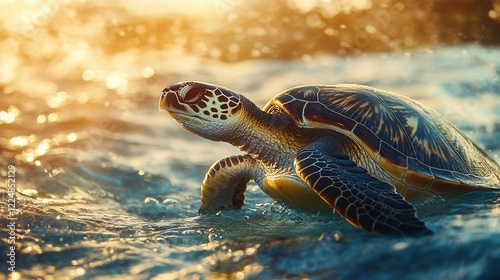 Water turtle with a detailed shell and intricate skin patterns sitting on a wet surface.