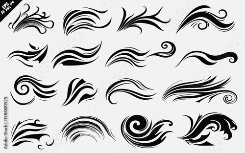 water wave icon silhouette vector set. vector design of various simple black silhouette water wave icons, isolated on a white background. Bold shapes, hand-drawn elements