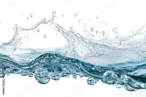 Water Wave. Water Bubbles Float Up Under Water. Freshness Pure Water Splashing on White Background , ai