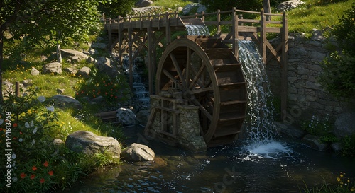 Water Wheel in Nature Landscape