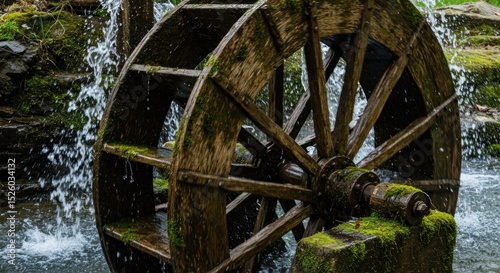 Water wheel wooden water power renewable energy nature