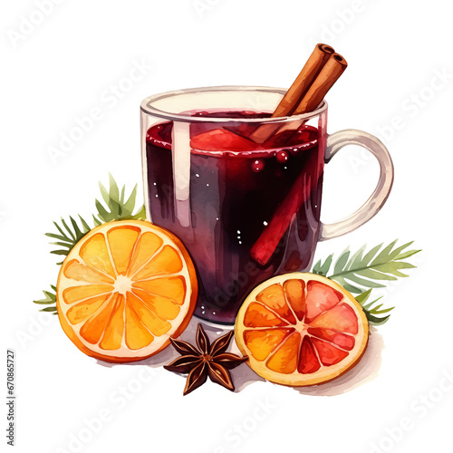 Watercolor mulled wine ,christmas decoraction, watercolor illustrations