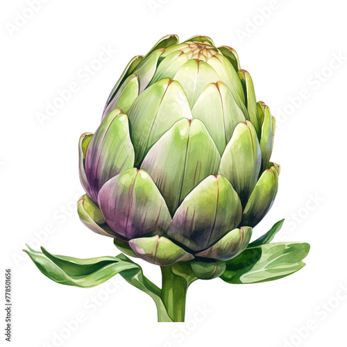 Watercolor Artichoke Illustration: Fresh Vegetable Botanical Art - Realistic and Decorative Design, Watercolor Artichoke on white transparent background, PNG