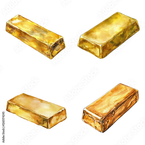 Watercolor artwork of gold bars studio setting digital painting bright environment artistic viewpoint translate background