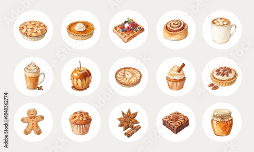 Watercolor Autumn Desserts and Cozy Spices Collection