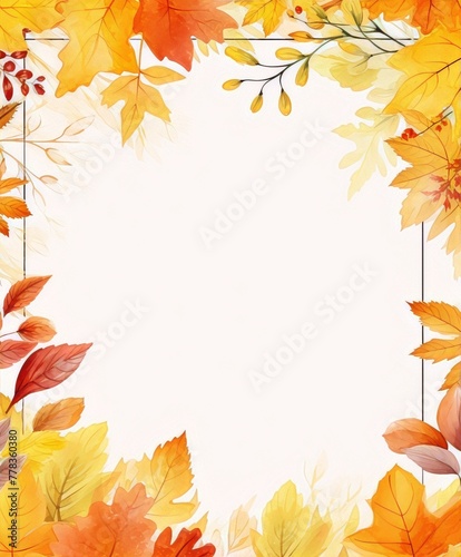 Watercolor autumn leaves frame, fall foliage border, orange yellow red leaves, white background, botanical art, digital art