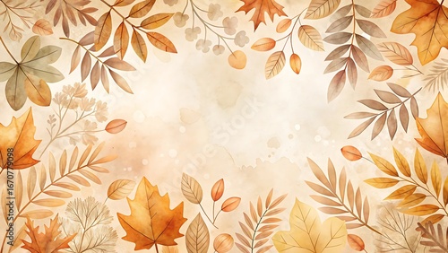Watercolor autumn leaves frame with copy space in warm earthy tones, perfect for seasonal design elements