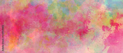watercolor background in pink green blue and yellow blotches, grunge texture painting in colorful distressed paper design with abstract blobs and blotches