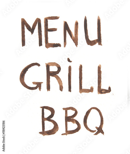 Watercolor bbq grill menu. Watercolor logo for grill cafe, restaurant. BBQ lunch, dinner time.
