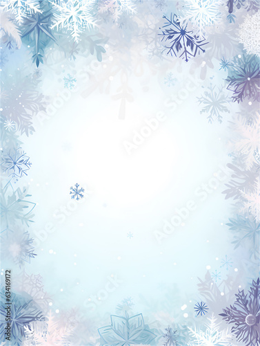 Watercolor blue pastel illustration with winter snow flakes, copy space and ai generated
