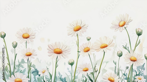 watercolor botanical Chamomile flowers texture template background.Elegant wedding invitation card background . Minimal hand painted Design for wedding or Valentine's Day