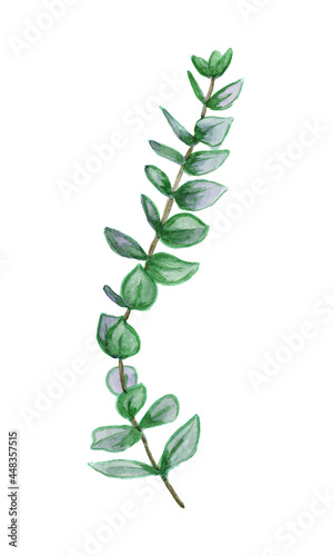 Watercolor botanical decorative illustration for wedding invitation card.Foliage blooming.Spring Green twigs and leaves watercolor set of watercolor green plants. Delicate twigs and leaves on a white