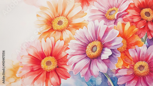 watercolor botanical Gerbera flowers texture template background.Elegant wedding invitation card background . Minimal hand painted Design for wedding or Valentine's Day