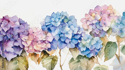 watercolor botanical Hydrangea flowers texture template background.Elegant wedding invitation card background . Minimal hand painted Design for wedding or Valentine's Day