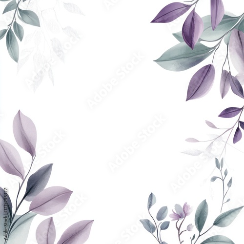 Watercolor Botanical Illustration Featuring Purple and Green Leaves