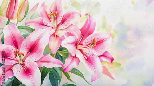 watercolor botanical Lilly flowers texture template background.Elegant wedding invitation card background . Minimal hand painted Design for wedding or Valentine's Day