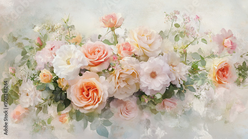 watercolor botanical Rose flowers texture template background.Elegant wedding invitation card background . Minimal hand painted Design for wedding or Valentine's Day
